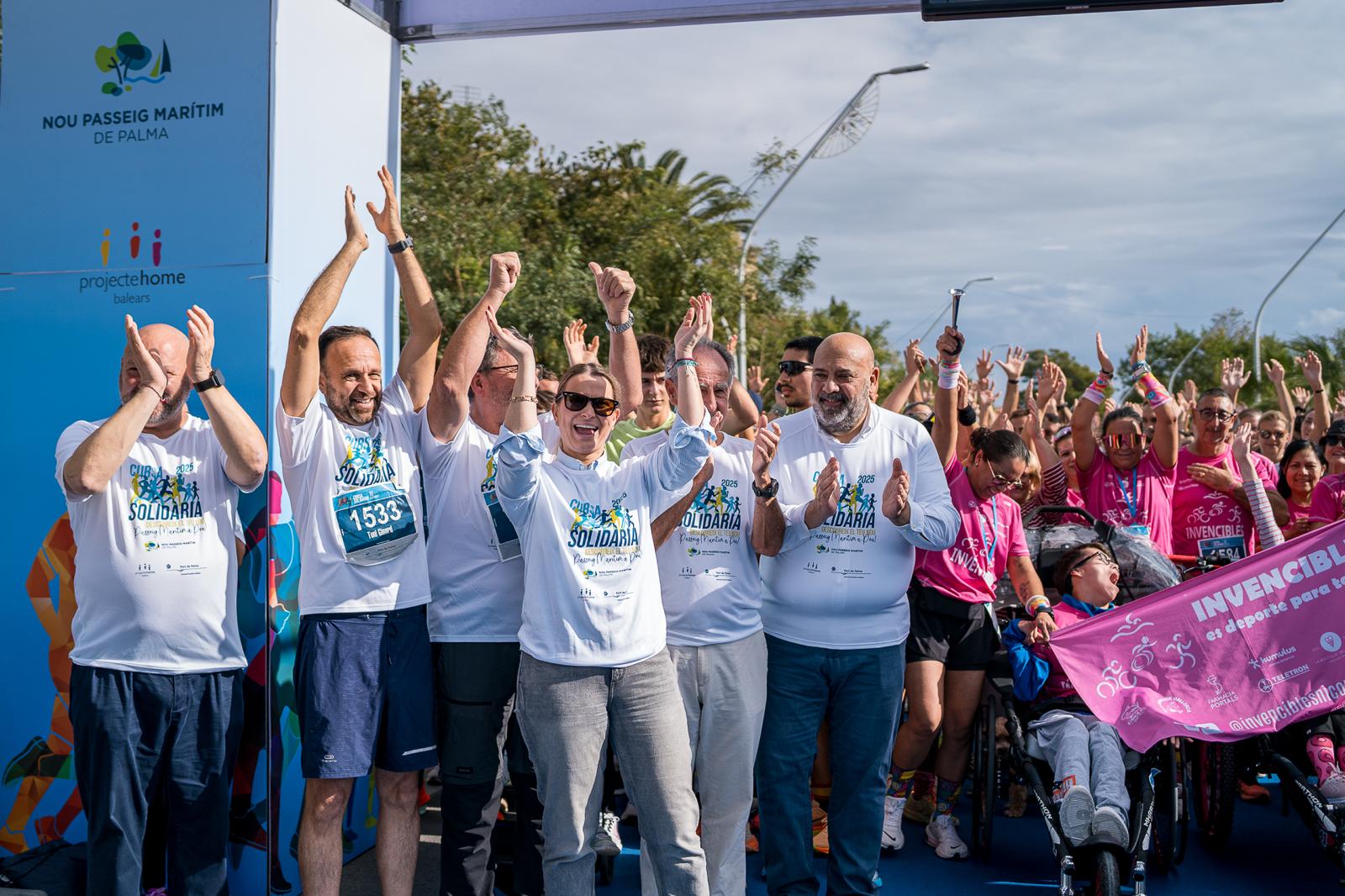 La Autoridad Portuaria de Baleares (APB) ha celebrado hoy domingo la I Cursa Solidària con motivo de la presentación pública del Nuevo Paseo Marítimo de Palma, con un éxito de participación que ha superado los 2.100 inscritos, en un evento que ha combinado deporte y solidaridad. La salida de la prueba ha estado presidida por la presidenta del Govern de les Illes Balears, Marga Prohens, el alcalde Palma, Jaime Martínez, el presidente de la APB, Javier Sanz, el presidente de Projecte Home Balears, Jesús Mullor y el director de la APB, Toni Ginard.