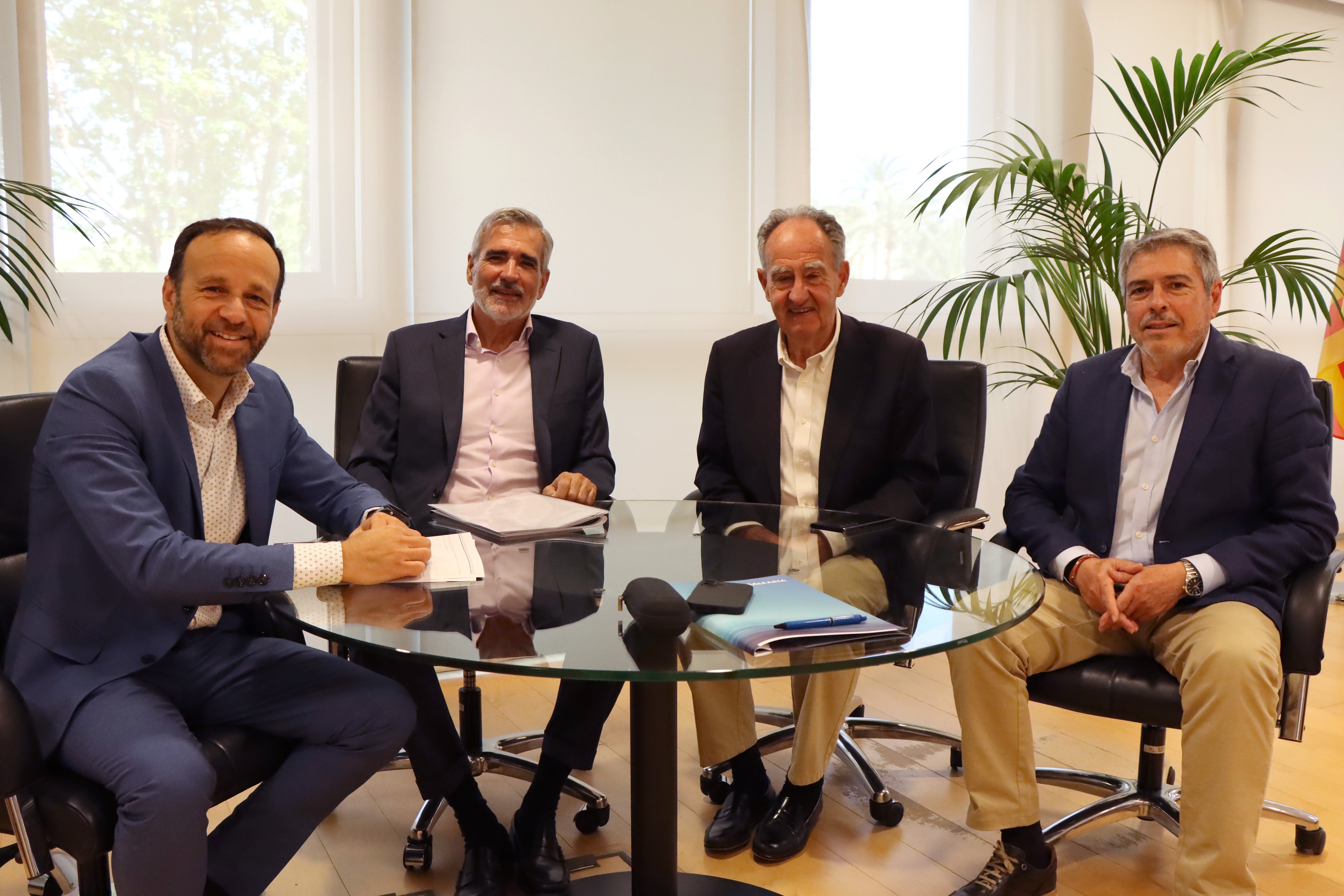 El presidente de la Autoridad Portuaria de Baleares (APB), Javier Sanz, junto al director de la entidad, Antonio Ginard, han mantenido una reunión de trabajo con el presidente de Baleària, Adolfo Utor y su delegado para Baleares, Joan Serra, con el objetivo de avanzar en la colaboración público-privada necesaria para el desarrollo del proyecto de transformación del puerto de Palma, presentado recientemente por la APB.
