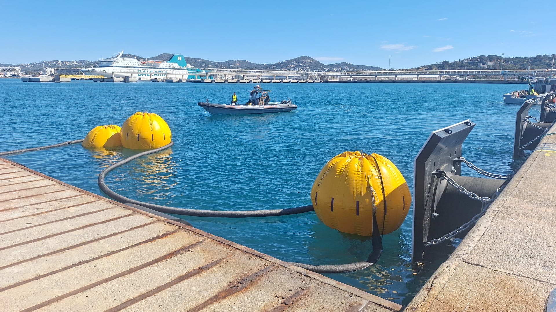 L’APB avança un dia l’operativa i inicia les maniobres de reflotament del iot enfonsat al port d’Eivissa
